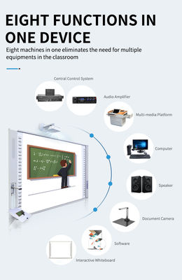 เครื่องมัลติมีเดียแบบ all-in-one ประกอบด้วยไวท์บอร์ดอินฟราเรดแบบโต้ตอบ คอมพิวเตอร์ขนาดเล็กอุตสาหกรรมขนาดเล็ก ลำโพงเสียงรอบทิศทาง ระบบควบคุมส่วนกลาง แผงควบคุม และไมโครโฟนไร้สาย (อุปกรณ์เสริม)ลักษณะที่ปรากฏใช้การออกแบบพ่นทรายสีเงินโลหะผสมอลูมิเนียมบริสุทธิ์เครื่องมัลติมีเดียแบบ all-in-one ใช้การออกแบบแบบบูรณาการและติดตั้งได้ง่ายเครื่องทั้งหมดต้องการเพียงสายไฟภายนอกและสายสัญญาณโปรเจ็กเตอร์โดยไม่ต้องเพิ่มสายที่สามคอมพิวเตอร์ใช้การออกแบบในตัวอย่างสมบูรณ์สินค้าดูสวยงามและฟังก์ชั่นสามารถตอบสนองความต้องการของผู้ใช้ได้